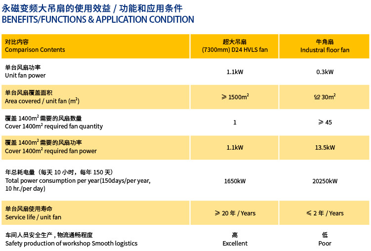 At the same time avoid the use of traditionalhigh-speed fan in the direction of thewind all year round, causing a varietyof hu man health problems, greatlyimprove the comfort of the environment.cR series fans can be combined with theactual needs of different occasions to adjustthe wind volume, the wind speed in the rangeof 1m-5m /s can be arbitrarily adjusted.In theopen space, an industrial energy-saving fancan cover a maximum area of 1500m3。
